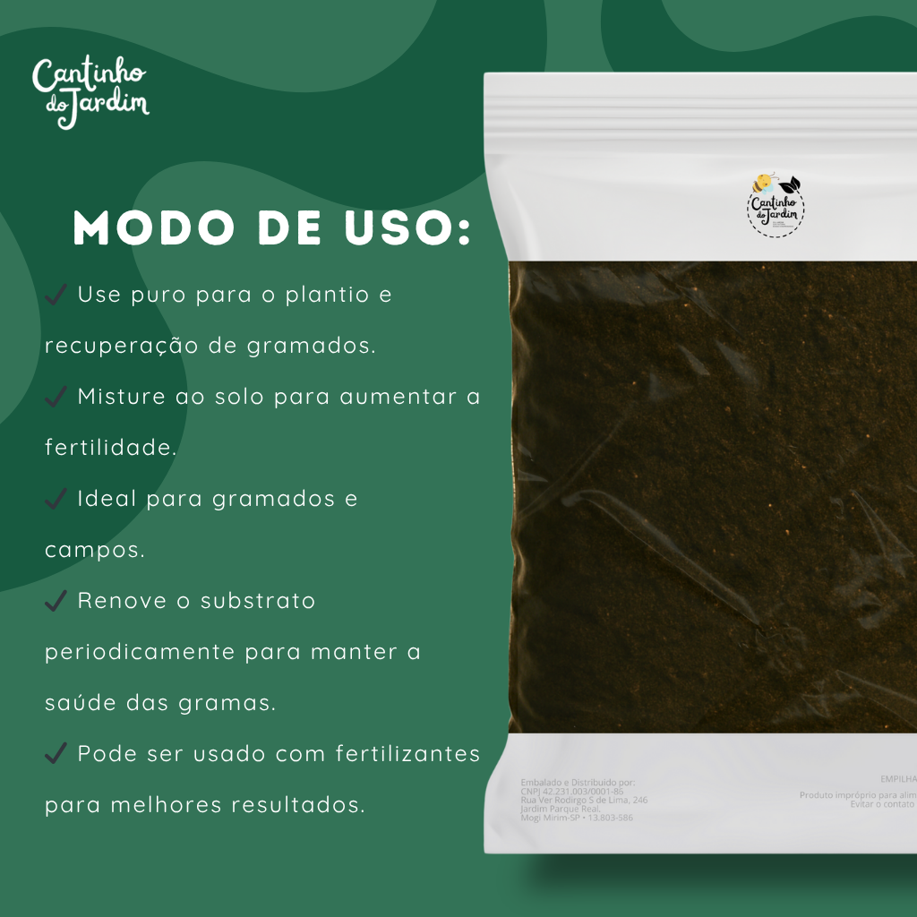 • Substrato pronto para uso: Mistura ideal para gramados mais saudáveis.